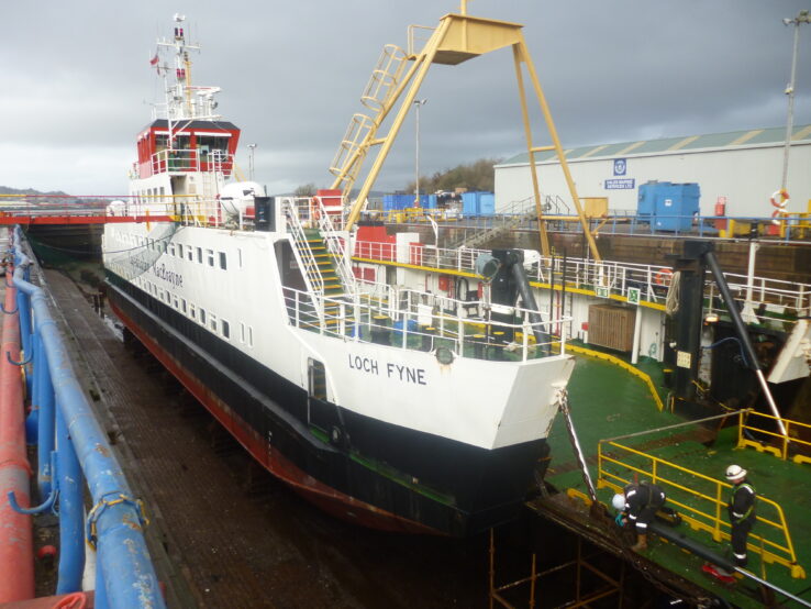 RL Engineers preparing ramp cylinders for removal on LOCH FYNE at Dales Marine Greenock